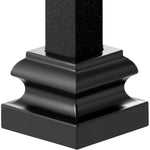 The railing shoe is constructed from 12-gauge aluminum alloy material with a wall thickness of 0.15 inches / 3.8mm, ensuring durability and resistance to deformation. It is coated with a spray coating for corrosion resistance and rust prevention, ensuring a long lifespan.