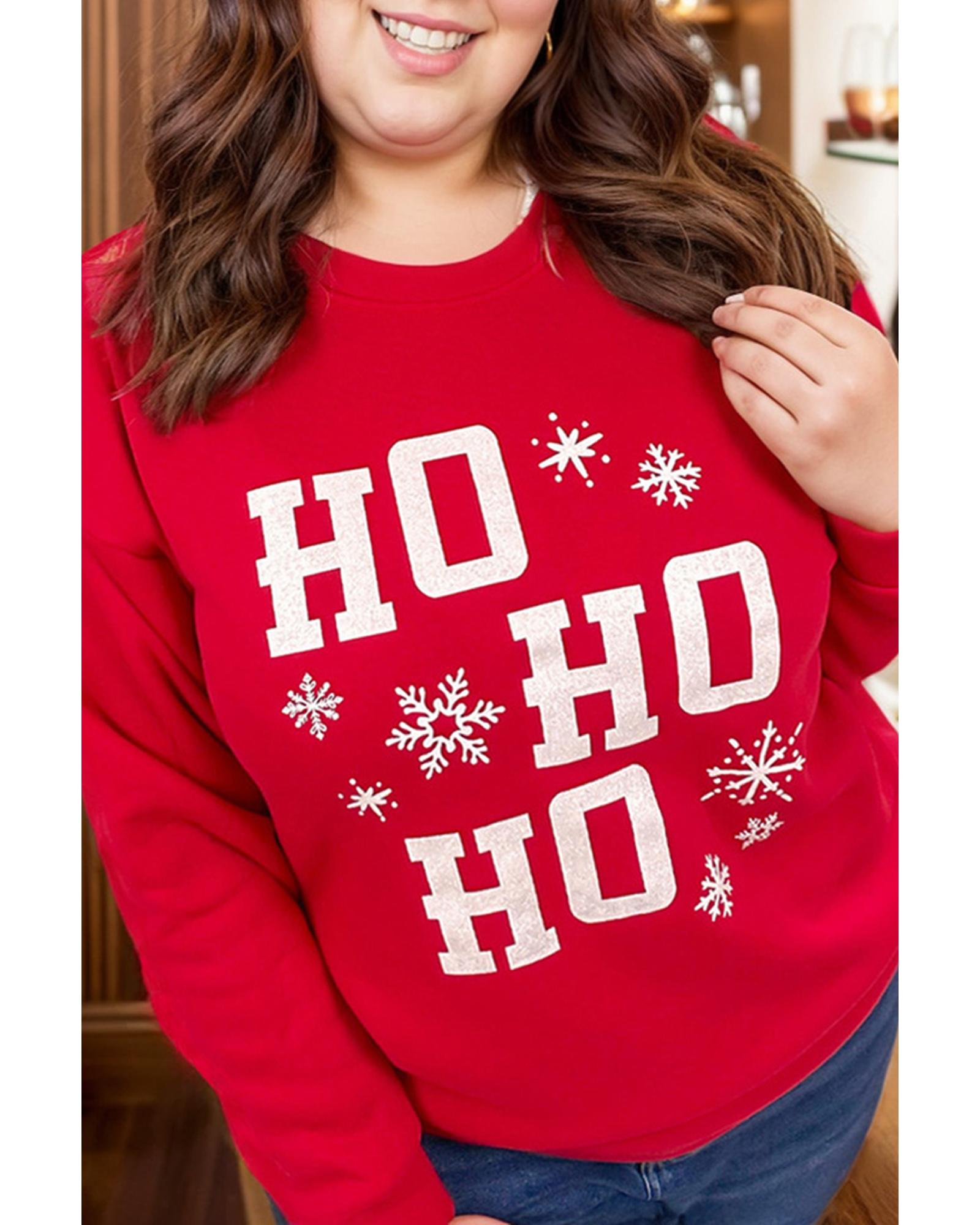 Fiery Red Christmas Ho Ho Ho Graphic Plus Size Sweatshirt - 1X