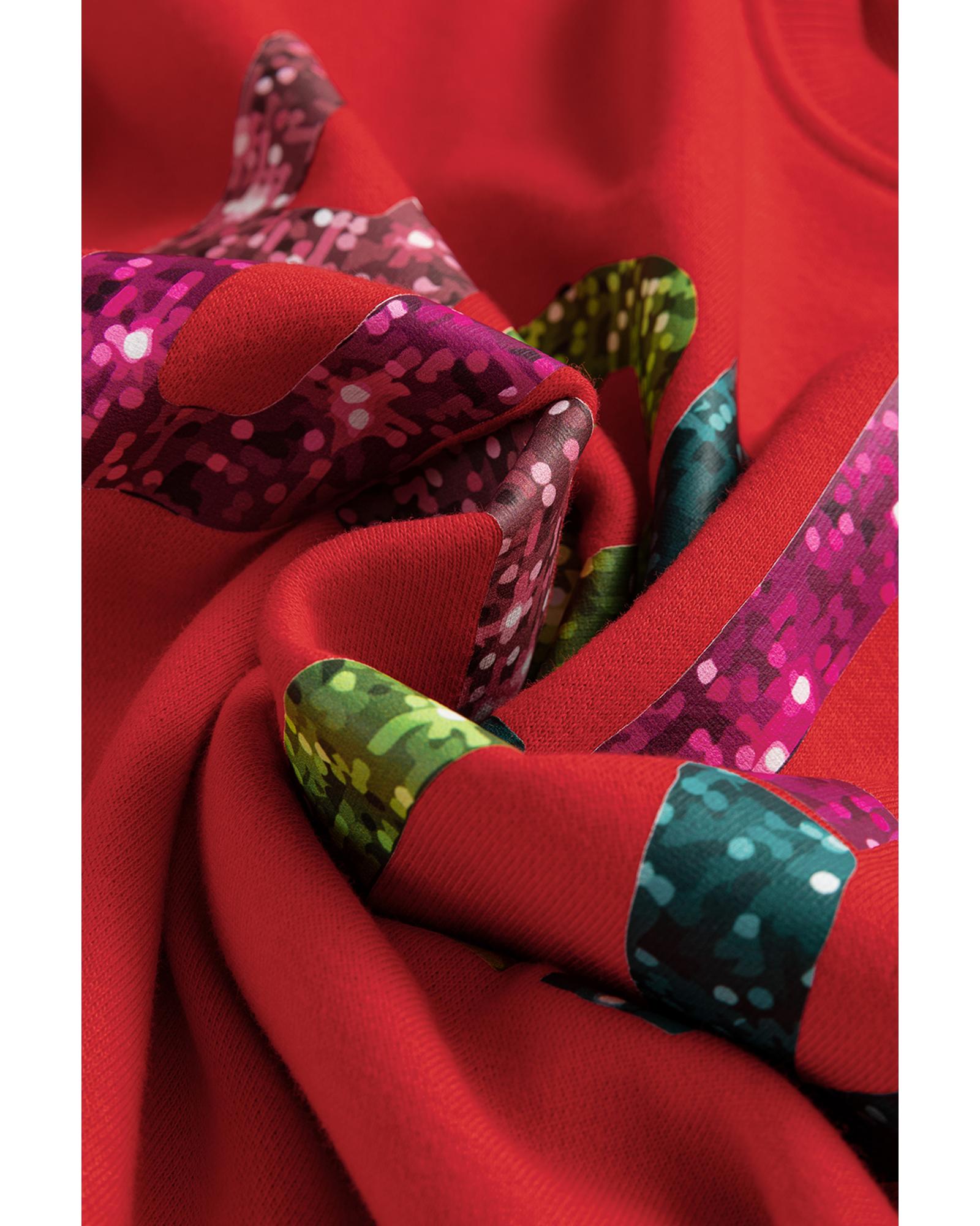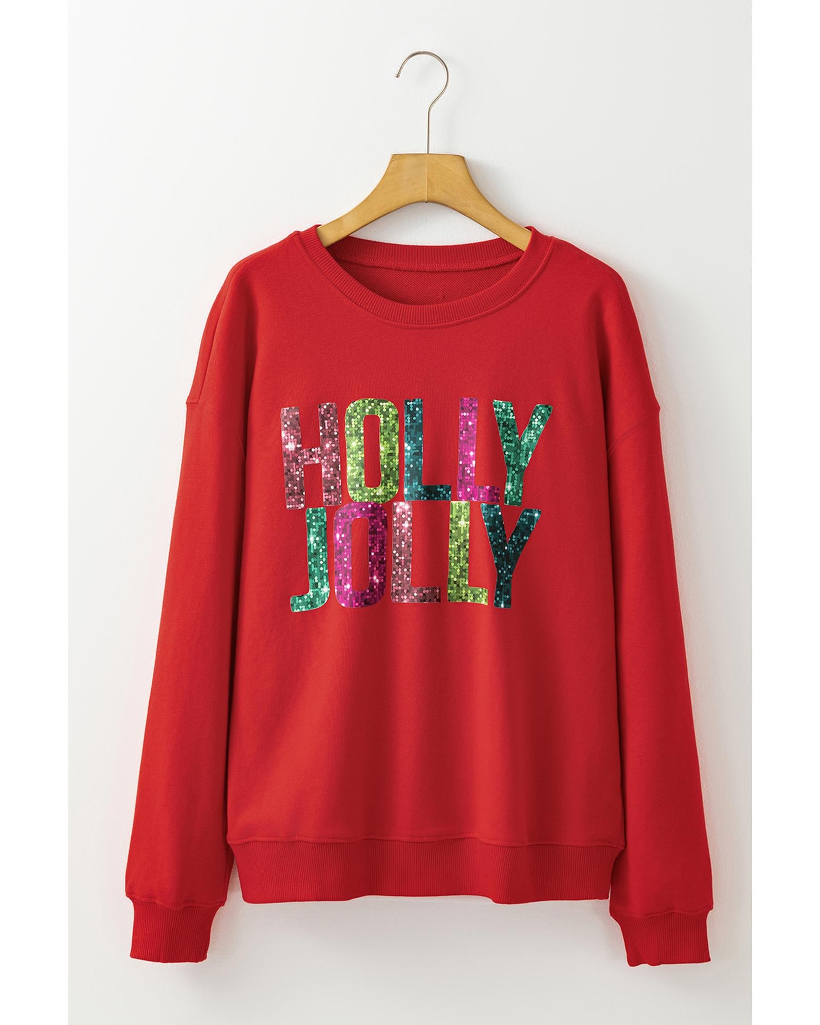 Red Heat Transfer HOLLY JOLLY Printing Christmas Pullover Sweatshirt - L