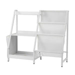 Crafted from water-resistant PB melamine with a sturdy metal frame, this white bookshelf wipes clean easily and withstands daily use. The added fabric pocket offers extra storage for small items. Measuring 75H �� 30W �� 83D cm and suitable for ages 3+, it helps develop tidying habits while fitting perfectly in bedrooms or playrooms. Simple assembly required with all hardware included.
