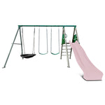 Lifespan Kids Europa Commercial Grade Steel Swing Set with Climb & 2.2m Slide (Pastel Pink)