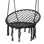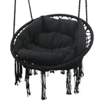 The Hammock Chair Swing with a generously sized 63cm seat cushion provides you with maximum comfort as you lean back and enjoy its gentle sway. Crafted with soft black polyester cotton fabric, it features soft cushioning and a supportive 44cm backrest for ultimate relaxation. The durable cotton rope and iron pipe construction, along with a galvanised O-ring, ensure strength and stability, supporting a maximum weight of 100kg. Give yourself a cozy and secure spot to unwind and enjoy your surroundings, suitable for indoors or outdoors.