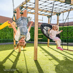Give your little monkeys the ultimate backyard playground, as they swing, climb, slide and explore across the Orangutan. This set has it all, with various climbing obstacles, including ropes, ladders and netting, as well as a 3-station swing and 2.2m slide for your little thrill seekers. Top it all off by whizzing down the slide for endless entertainment. Get a hold of the Orangutan set and build the backyard wonderland of their dreams today.