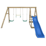 Little thrill seekers can defy gravity on the Winston 4 Station Swing Set. Up to four kids can play on the Winston, with two swings, a trapeze, and a 1.8m slide. Learn to fly on the belt swings, getting higher every time. Improve upper body strength and coordination on the trapeze bar. Climb up the three step ladder to slip down the 1.8m slide.