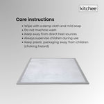 The snowflake dot plastic base grips hard floors securely, while the waterproof surface makes cleaning up spills quick and easy.