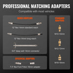 Our compression test kit comes with five different adapters, catering to 18mm, 12mm, and 10mm thread sizes. It also includes quick-connect adapters and special adapters, ensuring compatibility with both standard and specialized vehicle models.