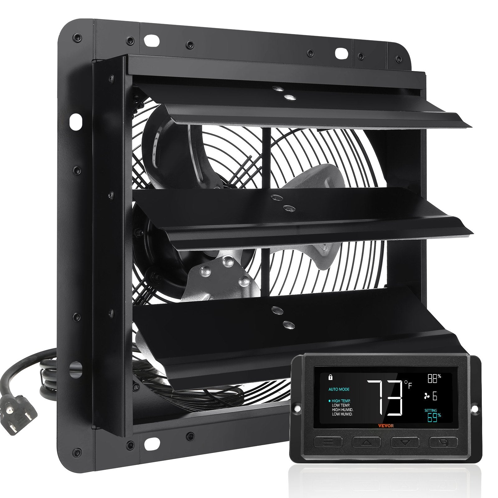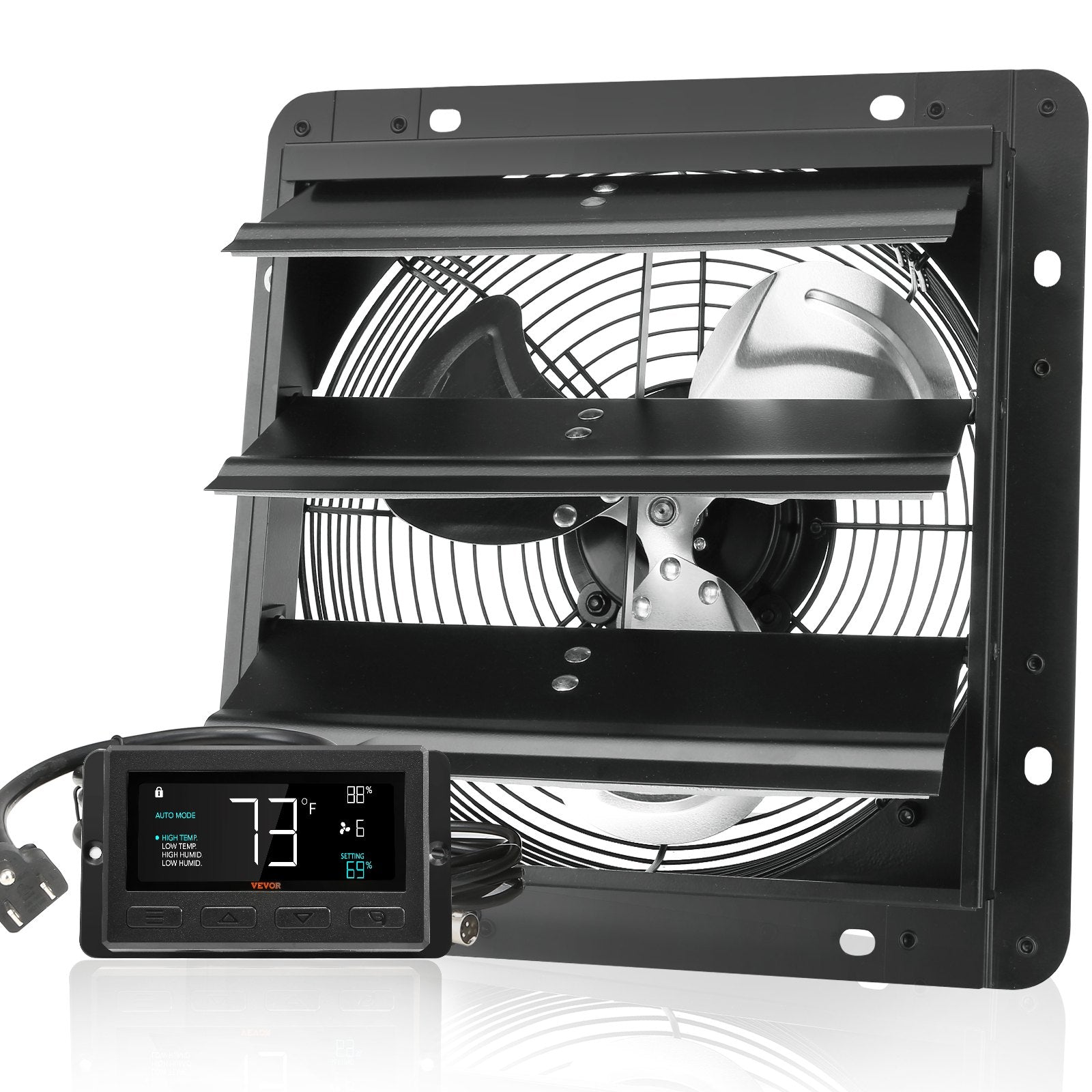 VEVOR Shutter Exhaust Fan, 254mm / 10inch with Temperature Humidity Controller, EC-motor, 843 CFM, Variable Speed Adjustable Wall Mount Attic Fan, Ventilation and Cooling for Greenhouses, Garages, Sheds