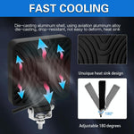• 1 x 1 Pair 4 Inch Square Double Circle Angel Eye Work Light Black