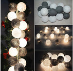 Black and White Alternate Cotton Ball String Fairy lights - 5cm diameter